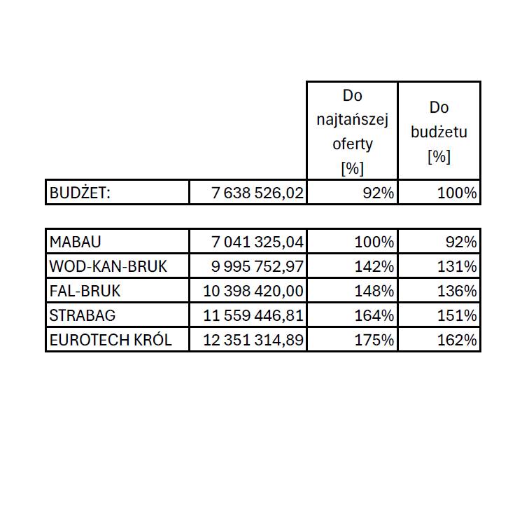 Najtańsza oferta za 7,041mln zł mieści się w budżecie i to będzie sukces jak ta firma zostanie wybrana i realizuje tą budowę w kwocie jako zaoferowała bez komplikacji.