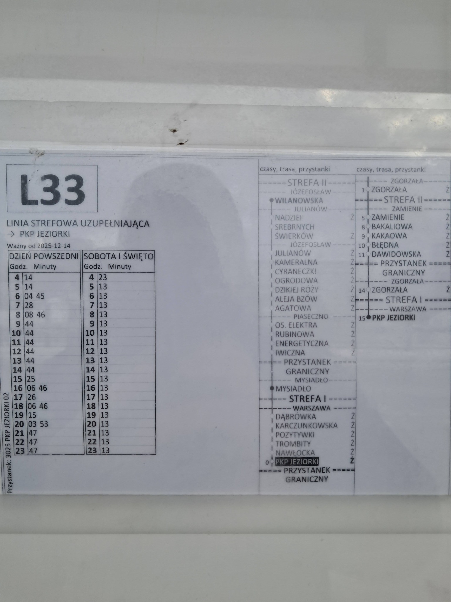 Ja dziś przetestowałem te trasy i ostatecznie postanowiłem pokonać trasę PKP Jeziorki do Puławskiej pieszo, ponieważ oczekiwanie na L33 trwało dłużej niż 25 minutowy spacek, który można zakwalifikować nawet jako ekstemalny z uwagi na fatalny stan chodników na ul. Karczunkowskiej.