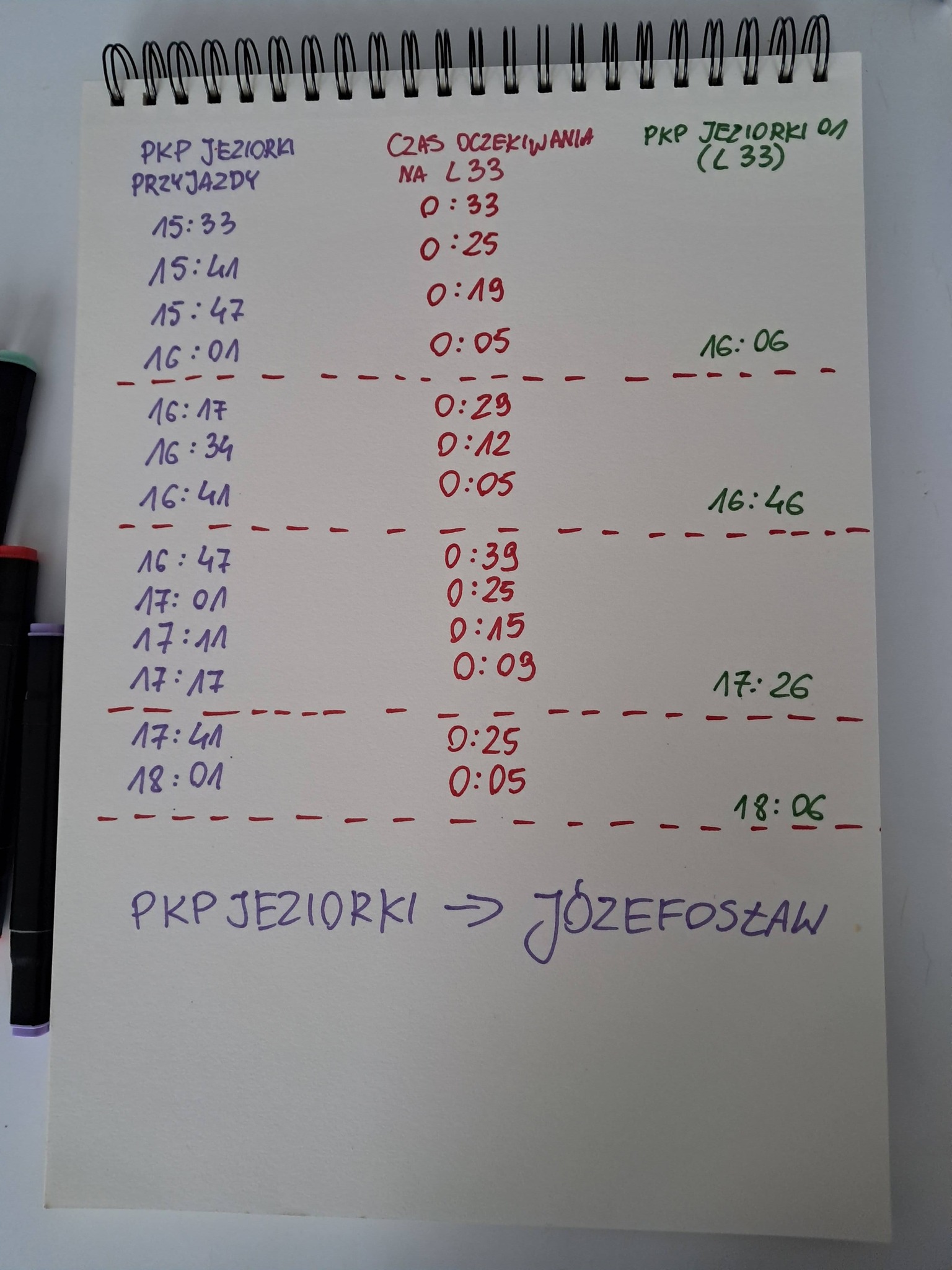 Dla przyczągnięcia uwagi moja analiza czasu oczekiwania na pociąg, L33 oraz fotoleracja z mojej dzisiejszej wycieczki.