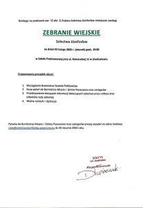 /w Aktualności, Dni Józefosławia, Wydarzenia /Dodane przez: Agnieszka Niemczyk-ProńZapraszamy na zebranie wiejskie Sołectwa Józefosław w dniu 3 lutego 2026